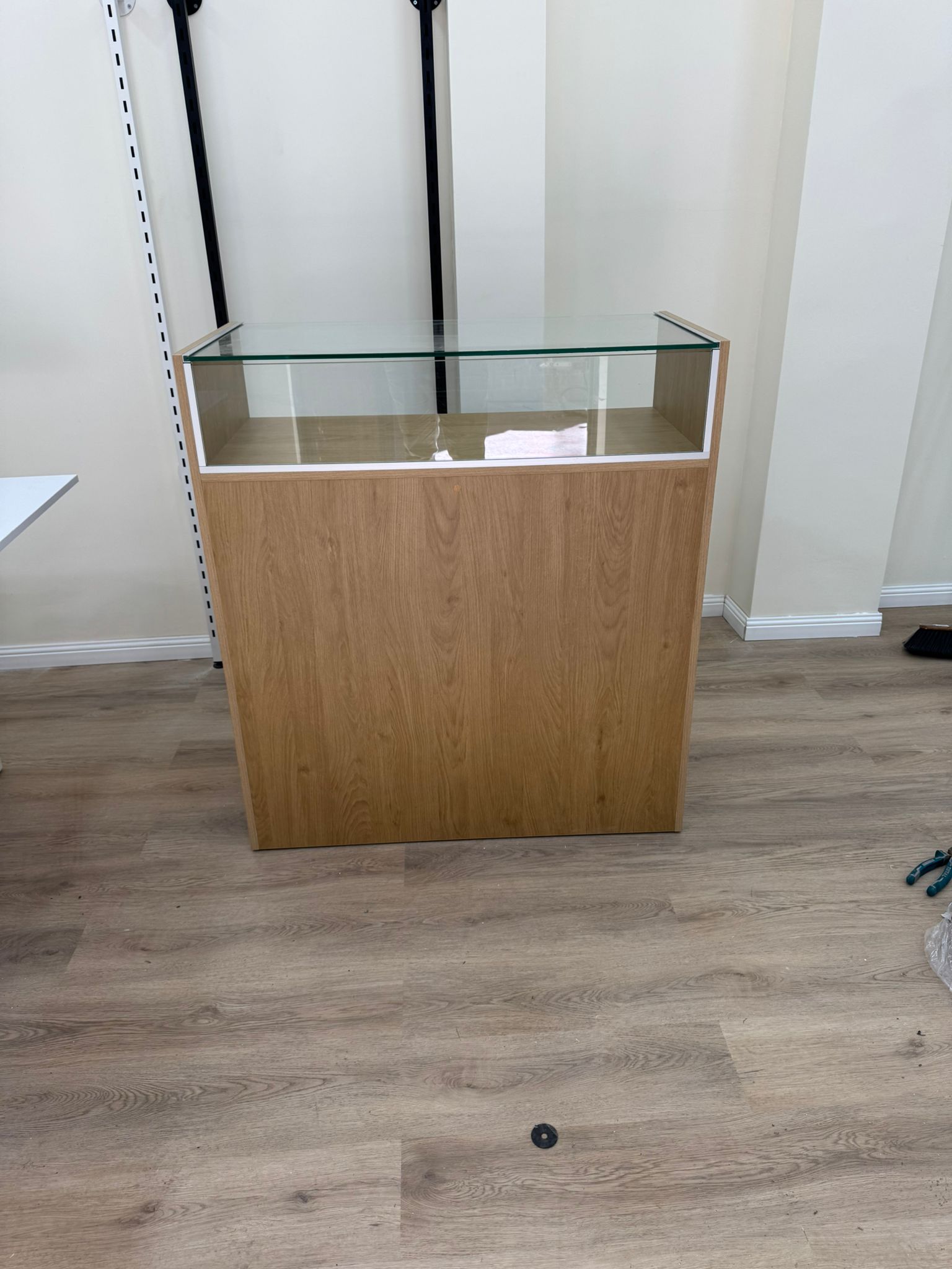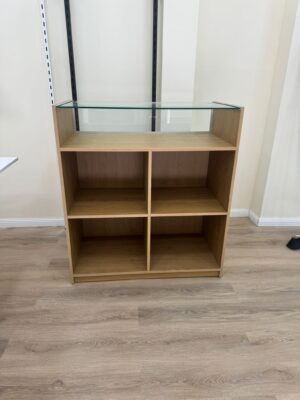 דלפק קופה בצבע עלון + זכוכית לתצוגה רוחב 120 גובה 90 עומק 45